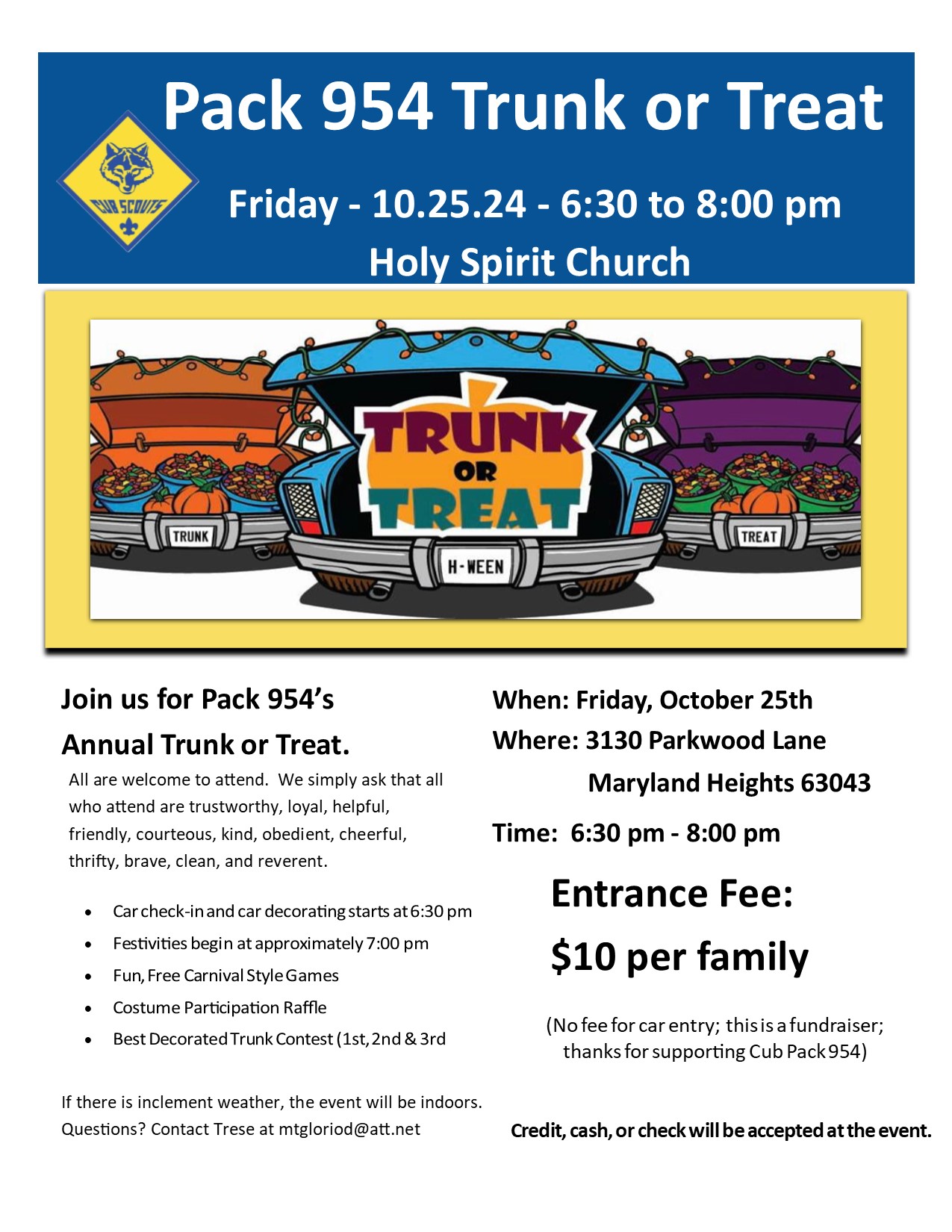 Trunk or Treat sponsored by Cub Scouts