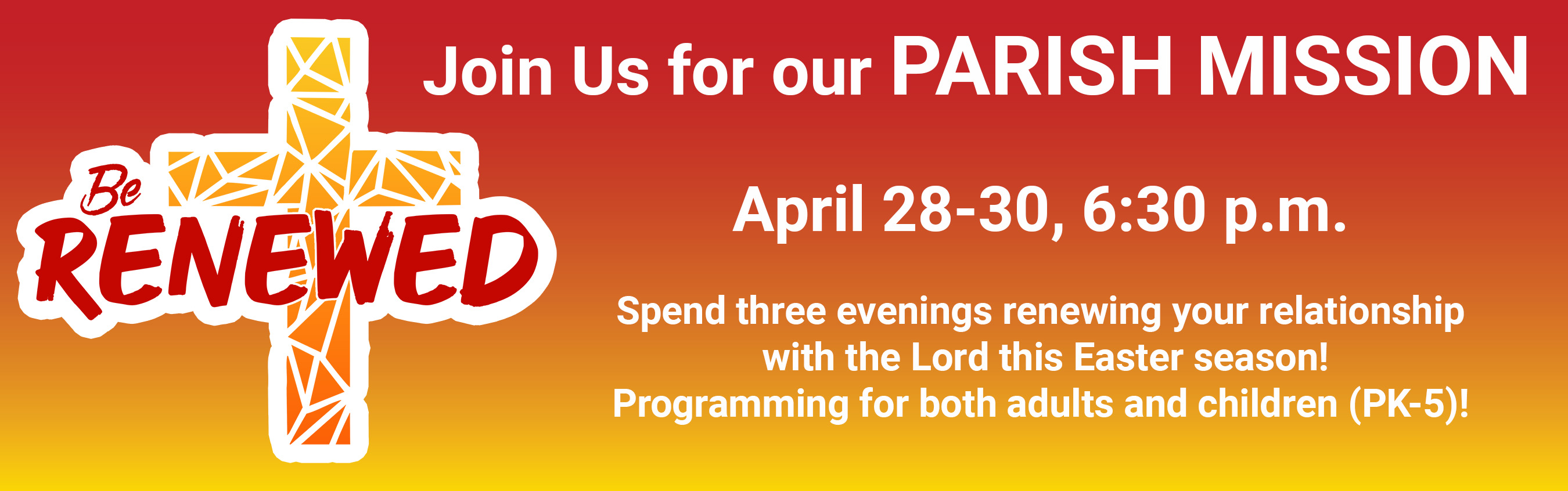 Come to BE RENEWED, no matter where you are on your faith journey.